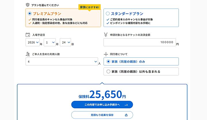 ・人数と日程で保険料が変わるシステム